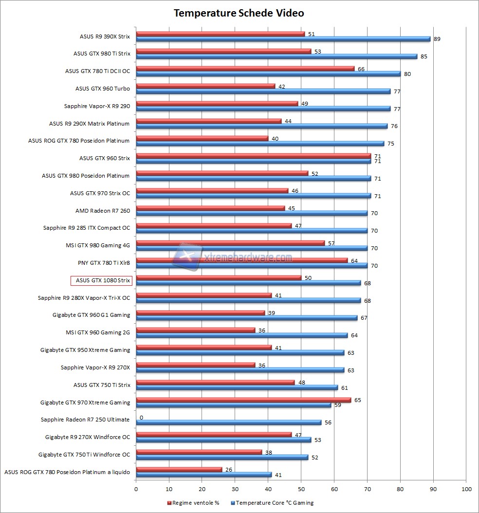 Vi lasciamo due grafici che illustrano meglio ciò che abbiamo detto fino ad ora e che confrontano le varie schede video da noi recensite. Ricordiamo che le ventole sono state impostate su Auto: